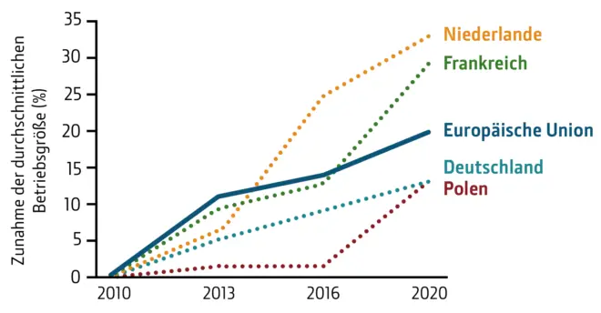 Entwicklung der durchschnittlichen landwirtschaftlich genutzten Betriebsfläche (in % Veränderung)