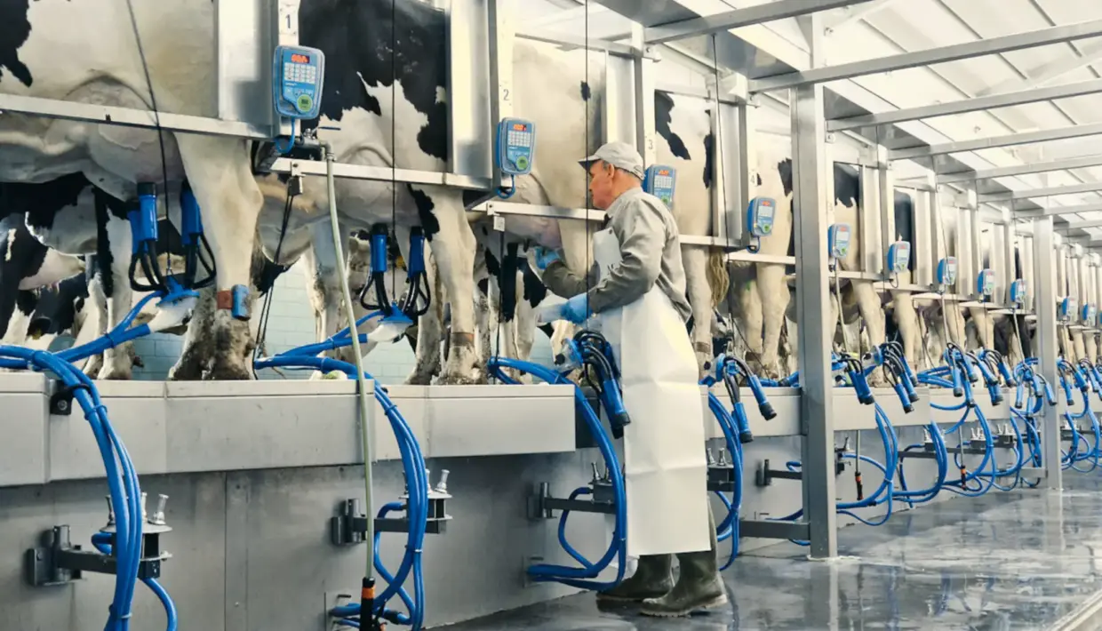 Das Melken erfolgt in zwei Schichten, tagsüber und nachts. Sie dauern jeweils sieben bis acht Stunden und werden von drei spezialisierten Mitarbeitenden durchgeführt. Neben der Milch wird von frisch abgekalbten Kühen Kolostrum gewonnen, das unmittelbar pasteurisiert und eingefroren wird. Das Kolostrum ist unerlässlich für den Immunschutz und steht so den neugeborenen Kälbern innerhalb von rund 30 Minuten zur Verfügung.